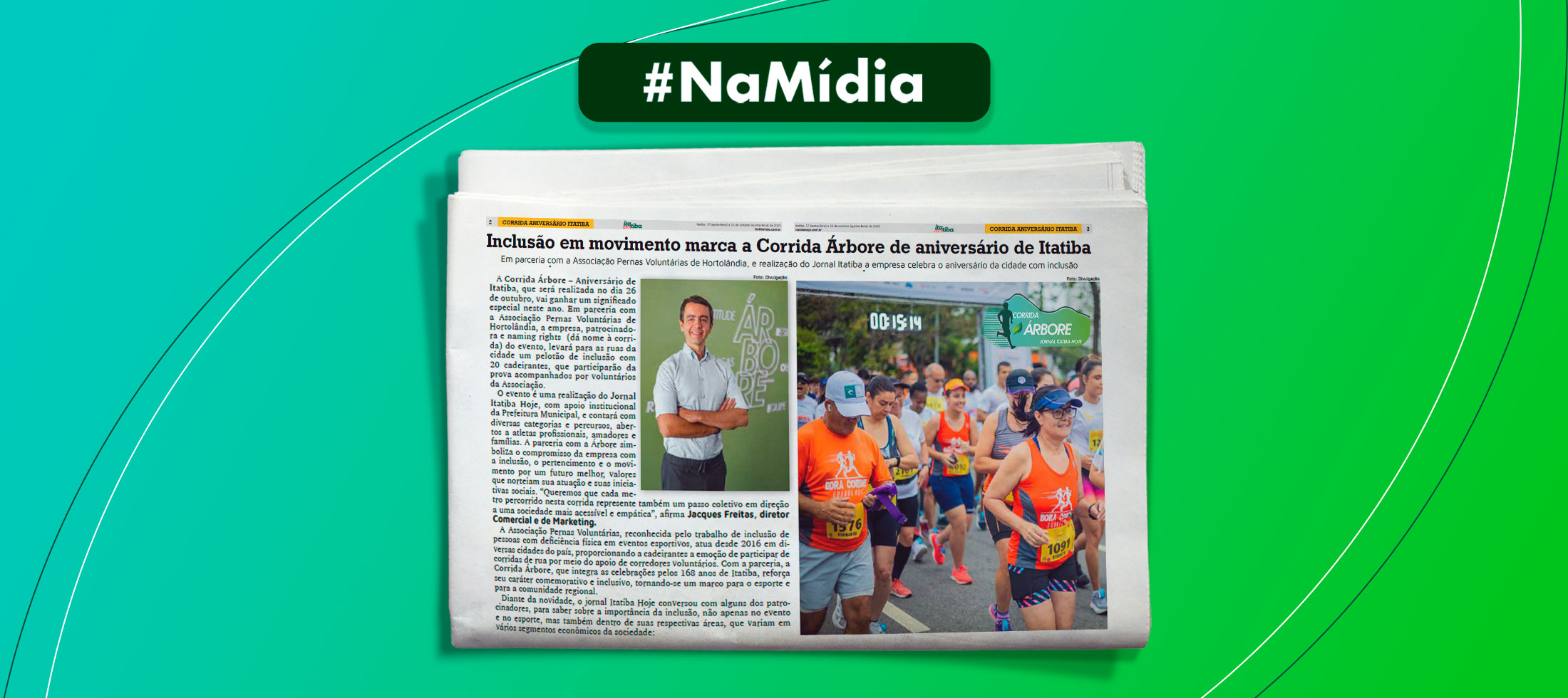 A Associação Pernas Voluntárias, reconhecida pelo trabalho de inclusão de pessoas com deficiência física em eventos esportivos, atua desde 2016 em diversas cidades do país, proporcionando a cadeirantes a emoção de participar de corridas de rua por meio do apoio de corredores voluntários. Com a parceria, a Corrida Árbore, que integra as celebrações pelos 168 anos de Itatiba, reforça seu caráter comemorativo e inclusivo, tornando-se um marco para o esporte e para a comunidade regional.