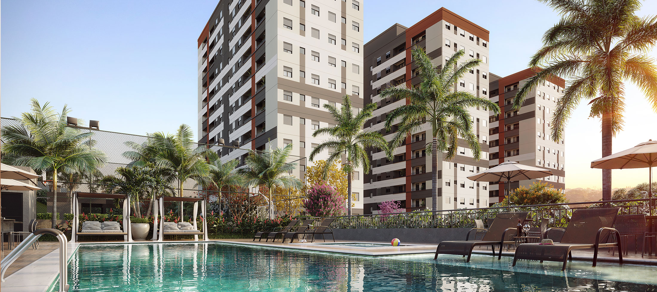 O empreendimento contará com três torres de 12 pavimentos, totalizando 309 unidades de dois dormitórios ou um dormitório com suíte, com varanda gourmet e vaga de garagem coberta. O projeto foi concebido para oferecer um conjunto completo de comodidades, incluindo academia, beach tennis, brinquedoteca, bicicletário, espaço gourmet, churrasqueira, mini market, piscinas adulto e infantil, playground, play baby, pet place e sauna, um diferencial pouco comum em empreendimentos da região. O condomínio também terá portaria 24 horas e car station para recarga de veículos elétricos.