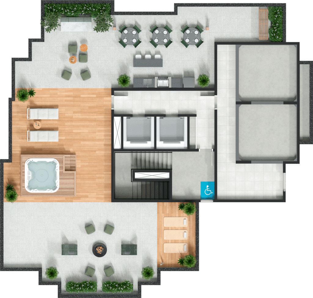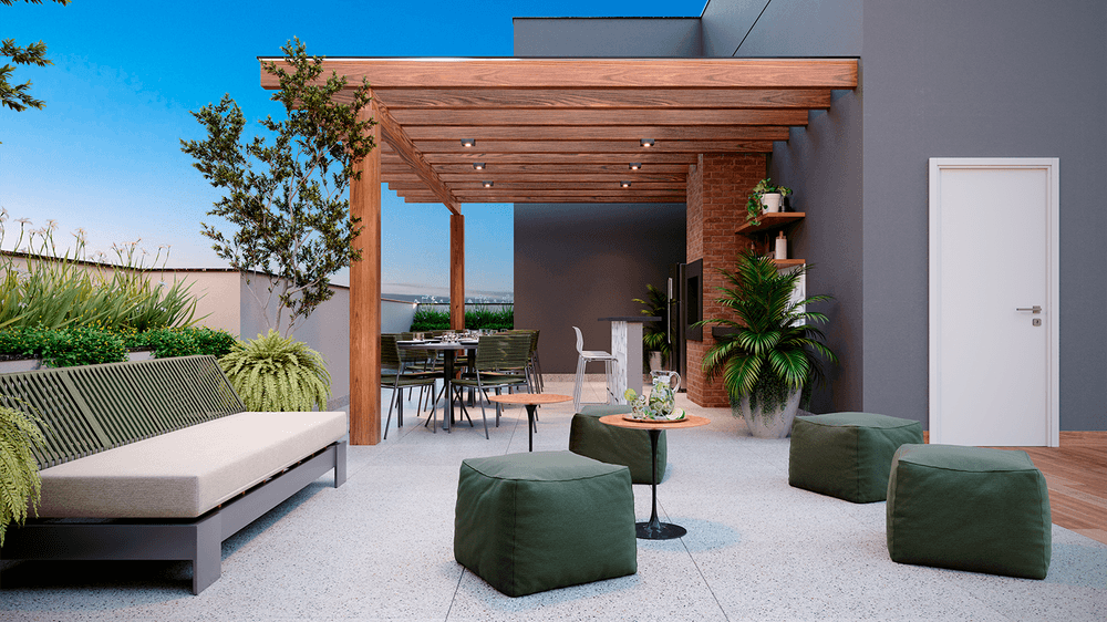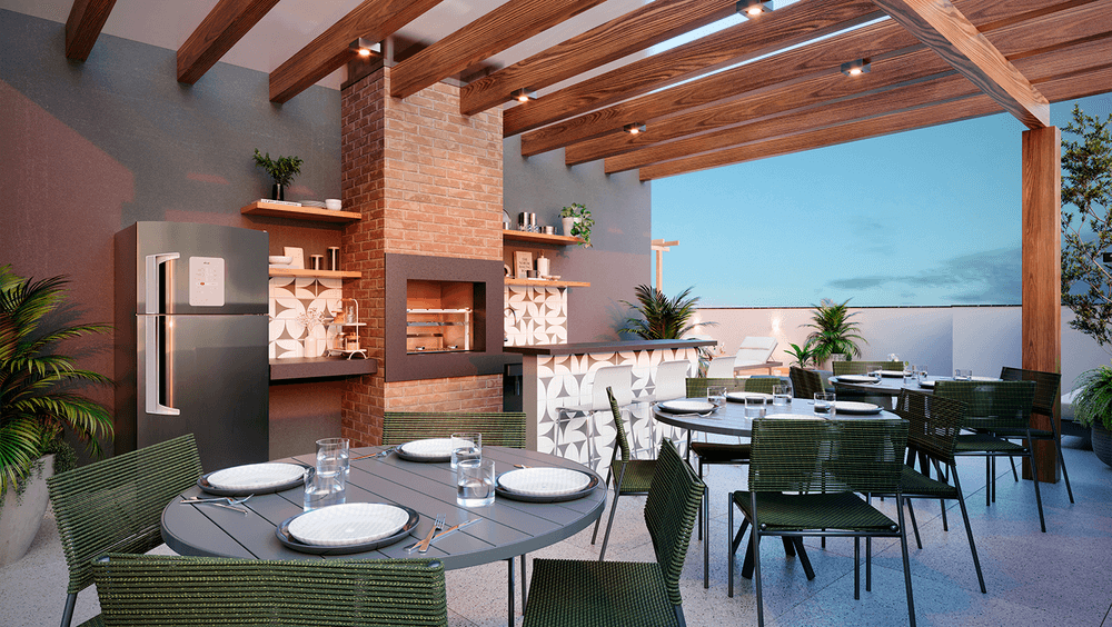 Sem igual, com uma área externa que inclui churrasqueira, academia moderna, espaço dedicado aos pets, salão de festas, mini market, spa e muito mais, garantindo momentos de alegria e relaxamento sem sair de casa.